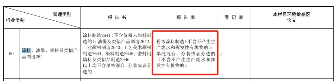 此次修订首次将“粉末涂料制造”从传统“涂料制造”大类中剥离,单独界定其环评要求,体现对环保工艺的技术认可。