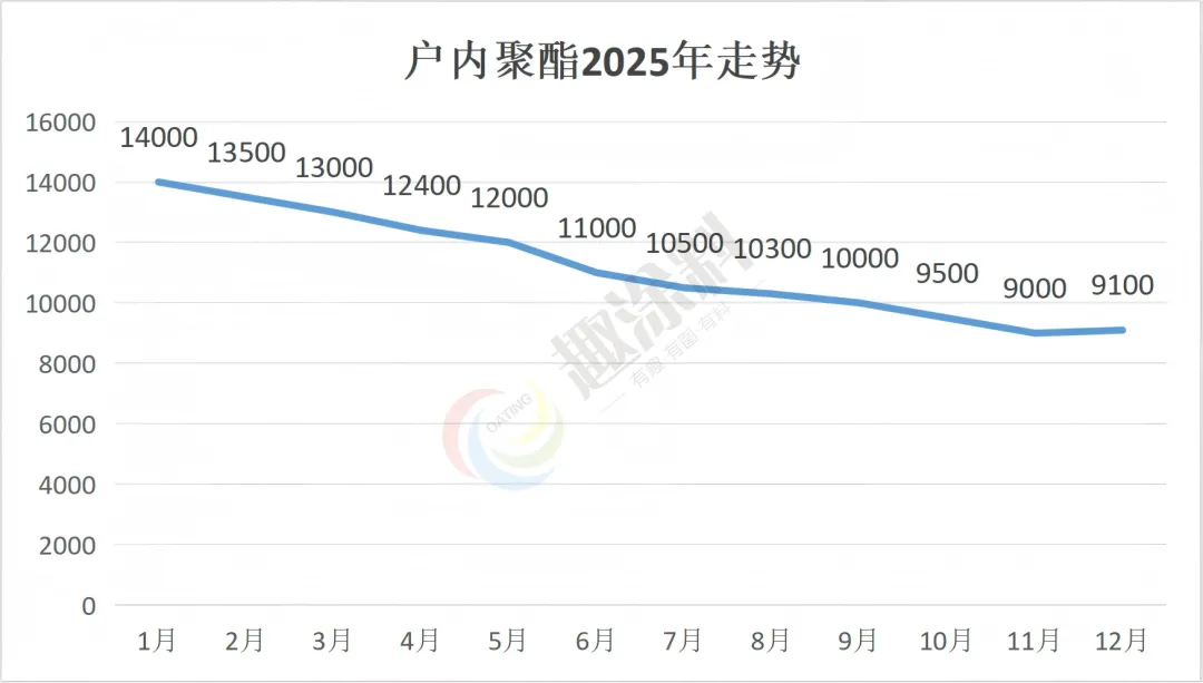 户内聚酯全年价格波动幅度收窄至5000元/吨,较2024年(波动幅度6000元/吨)显著减小。