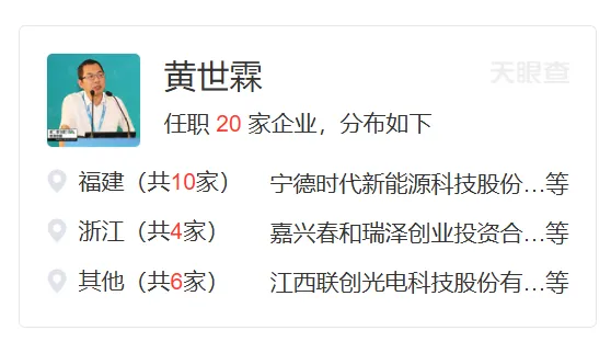 有迹象表明,黄世霖或将投身储能赛道。2022年黄世霖申请辞职后,宁德时代就表示,后续黄世霖将在“光储充检”这一新兴领域探寻业务机会,未来有望与公司形成战略协同,共同推动新能源产业的发展。