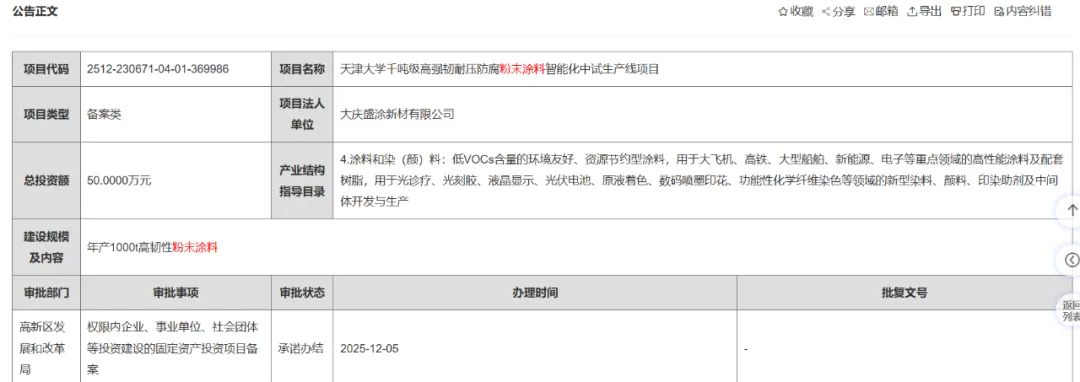 2025年12月5日,天津高新区发展和改革局的一则备案信息,披露大庆盛涂新材有限公司与天津大学携手开启千吨级高强韧耐压防腐粉末涂料智能化中试生产线项目,总投资50万元,目标年产1000吨高韧性粉末涂料。这背后,实则是家电行业工艺变革掀起的一场粉末涂料“升级风暴”。