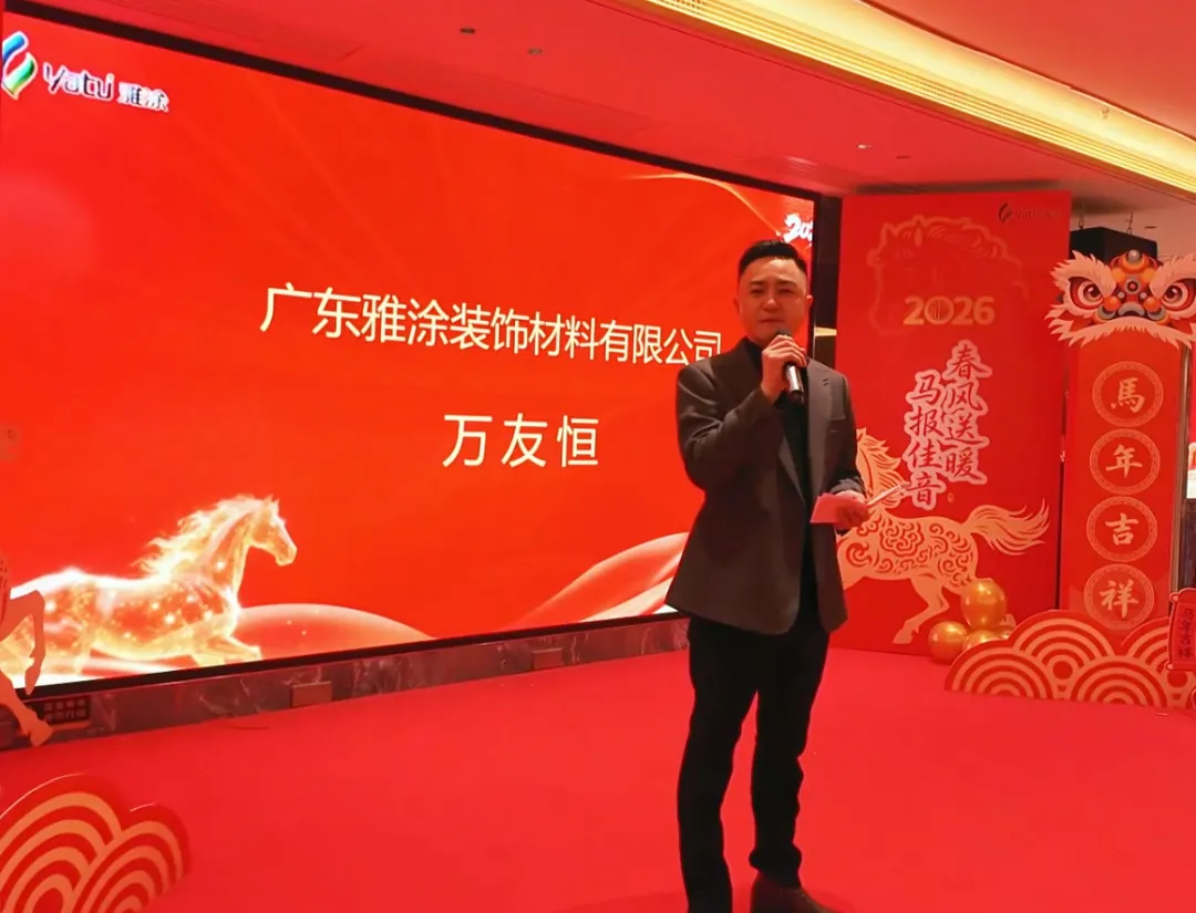 雅涂负责人发表致辞,深情回顾了企业五年发展历程中的关键节点与奋斗故事。他表示,五年来的成长离不开行业政策的指引、供应商的鼎力支持、客户的信任包容以及全体员工的并肩拼搏。面对粉末涂料行业绿色化、功能化、高端化的发展趋势,雅涂将以五周年为新起点,持续聚焦技术创新,重点攻坚低温固化、高耐候性等前沿技术,进一步拓展高端应用场景;同时深化供应链协同与客户服务体系,从“产品制造者”向“高端颜色解决方案服务商”全面升级,为行业高质量发展注入新动能。