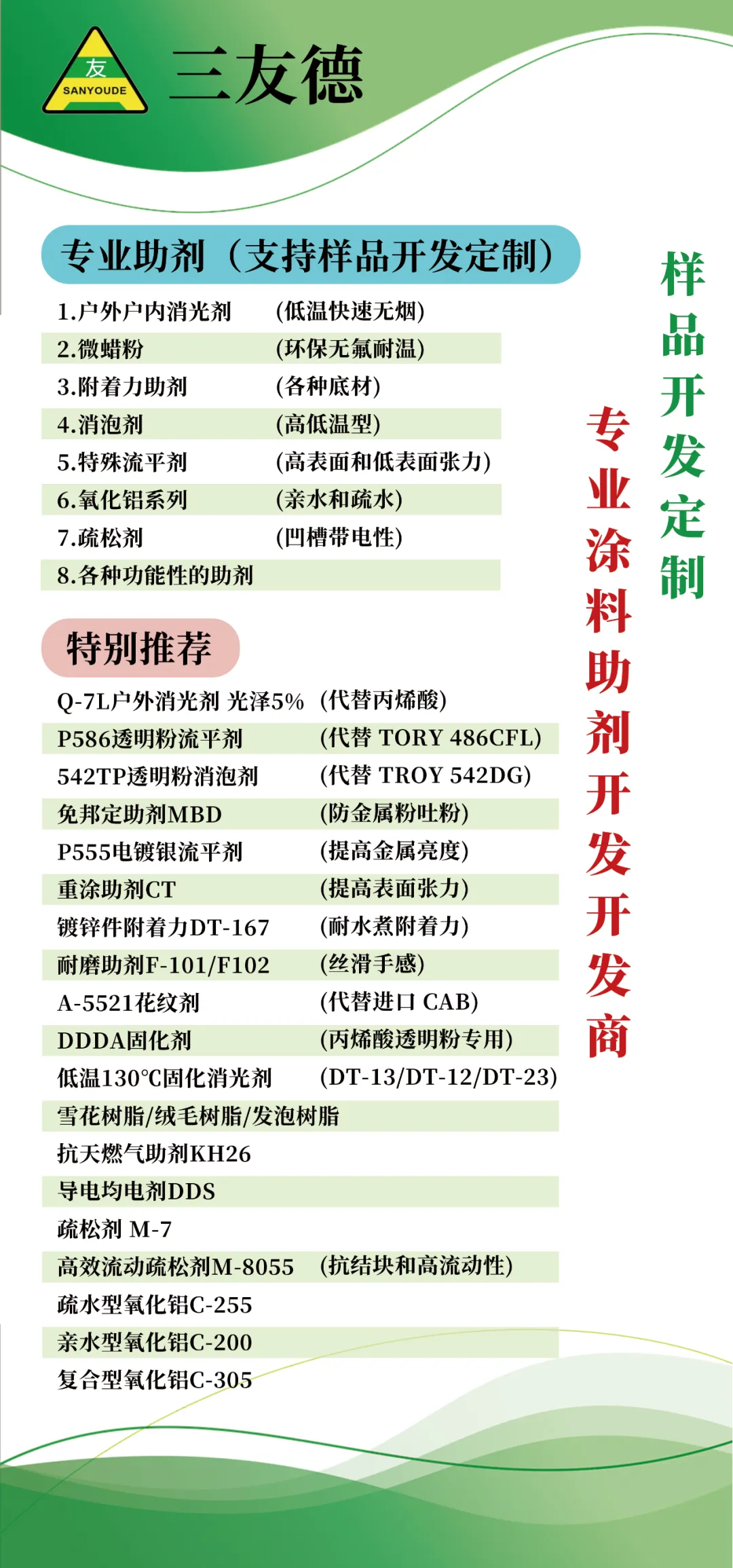 公司负责人表示:“三友德始终以技术创新为核心,通过提供低VOC、高性能的助剂产品,助力全球客户实现环保目标。此次参展,我们期待与更多国际伙伴建立合作,共同推动粉末涂料行业的可持续发展。”
