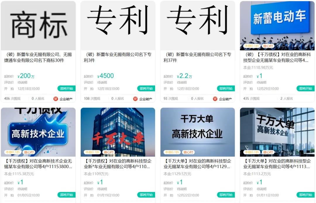 近日,一则令人震惊的消息传来:新蕾车业无锡有限公司等相关公司正式破产,目前部分房产、设备、商标、专利及车辆已经多次进行公开司法拍卖。