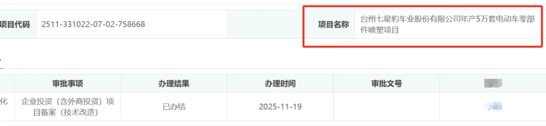 台州七星豹车业股份有限公司年产5万套电动车零部件喷塑项目