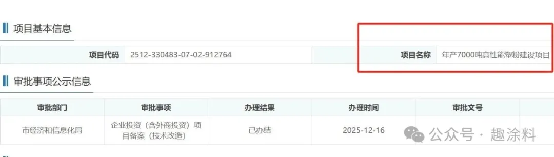 继淮北新灿新材料有限公司年产塑粉2000吨项目之后。近日,浙江新灿新材料有限公司,年产7000吨高性能塑粉建设项目,在市经济和信息化局,进行企业投资项目备案。
